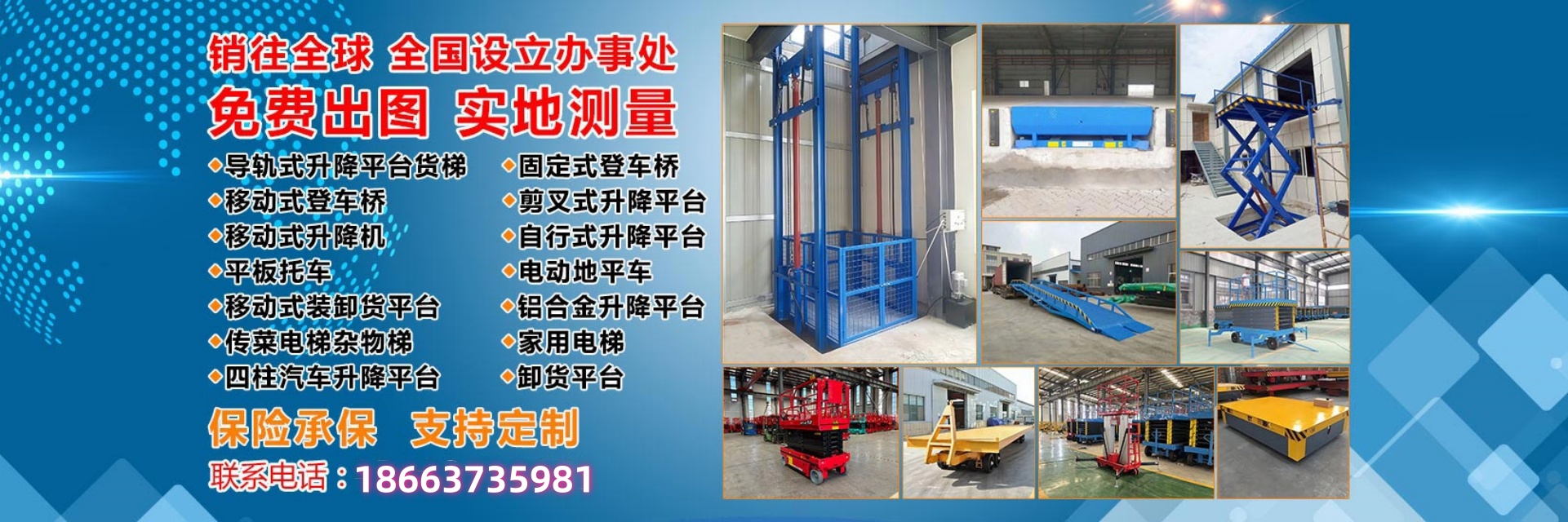 濟南九恒機械制造有限公司是全國制作液壓升降平臺的廠家,公司自運營以來,重點發展液壓升降平臺、升降機的研制和開發。本公司生產設備精良、技術力量充分、工藝流程合理、檢測手段齊全。產品共有八大系列、六十多個品種。主要承接各種非標產品的設計和制作,規格齊全、質量保證、所生產的產品符合國業標準。廣泛用于廠房維修、工業安裝、設備檢測、物業管理、倉庫、航空、機場、港口、車站、加油站、體育場、博物館、展覽館等許多行業和場所。